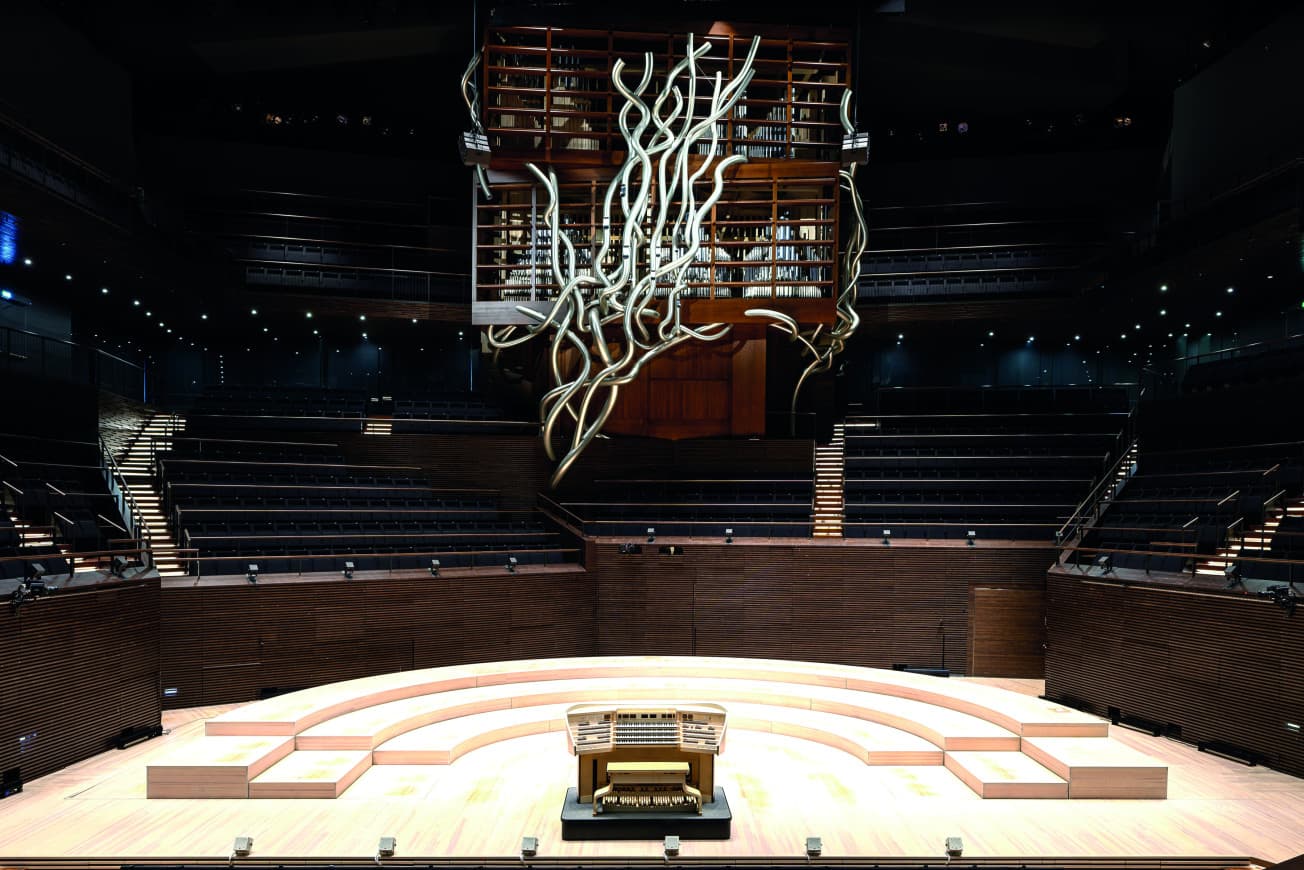 Diese am 1. Januar 2024 eingeweihte Konzertsaalorgel ist spektakulär – allein schon wegen ihres Äußeren: Vor dem für einen Konzertsaal nahezu unverzichtbaren Generalschweller, der auf zwei verschobenen Kuben 14m hoch weit in den Saal hinauf ragt, steht eine Skulptur aus zahlreichen in sich verschlungenen Pfeifen, die alle spielbar sind. Das Design entstand in Zusammenarbeit von Harald Schwarz und Wendelin Eberle.