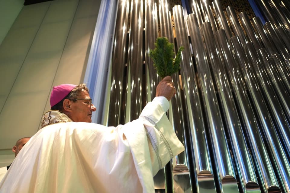 Am 19. Juni 2025 hat Bischof Felix Gmür aus Basel in einem feierlichen Pontifikalamt die neue Rieger-Orgel der Pfarrkirche Herz Jesu in der Schweiz eingeweiht (48/III).