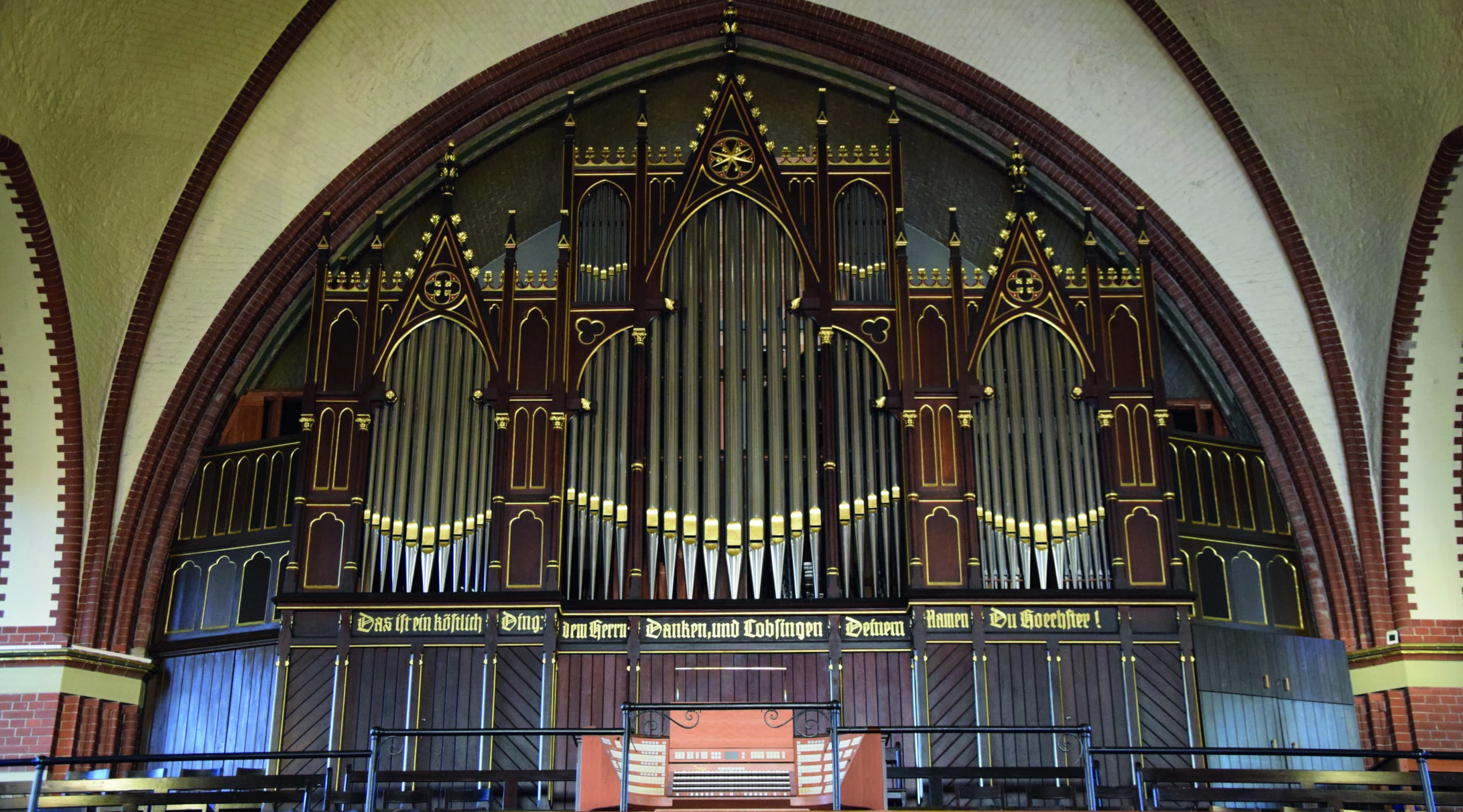 After almost a year of restoration in our workshop, the Furtwängler & Hammer organ was reinstalled on site in the Auenkirche in the Wilmersdorf district of Berlin in the spring of 2023 and inaugurated on Reformation Day. The instrument has 85 stops on four manuals and pedals. The organ was built in 1897 and expanded and modified in 1924, 1961 and 2001. Our restoration workshop largely restored the organ to its original condition, with some stops that were added later being preserved as part of the organ’s historically “evolved condition”.